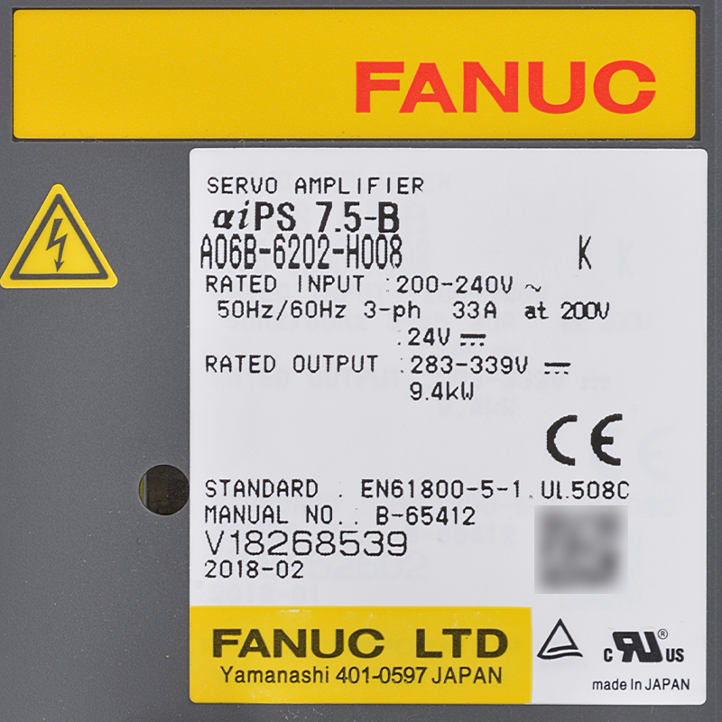 Fanuc ជំរុញ A06B - 6202 - H008 Fanuc Commo Sermier Apips Aips Aips 7.5 ខការផ្គត់ផ្គង់ថាមពល