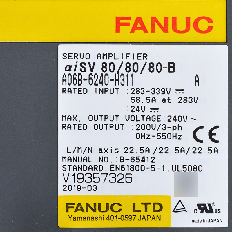 Fanuc ជំរុញ A06B-6240-H311 Fanuc servo amplifier aiSV 80/80/80-B