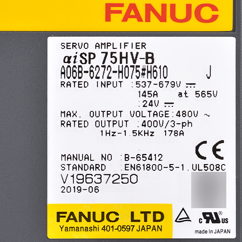 ឧស្ម័នការពារជំងឺ A06B - 6272 - H075 # H610 Fanuc Finucier Asisifier ais 75hv - ខ